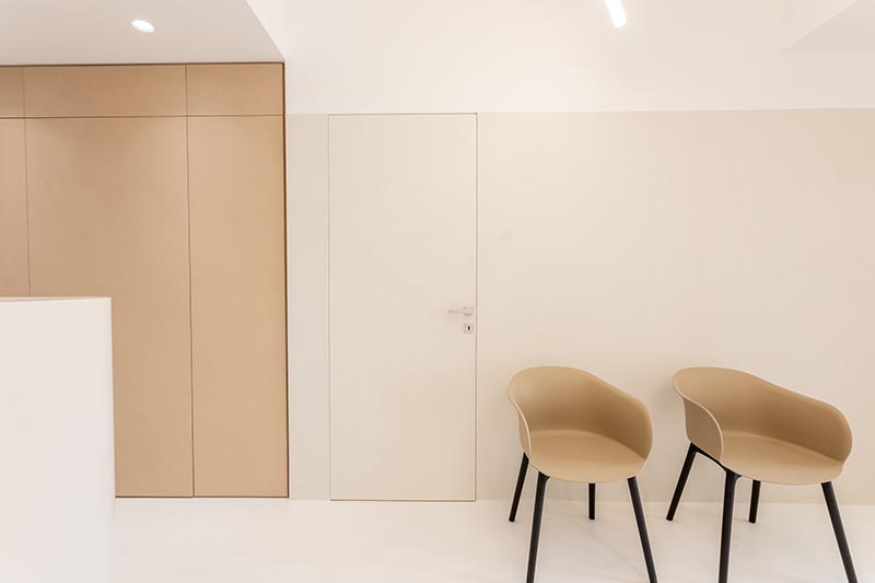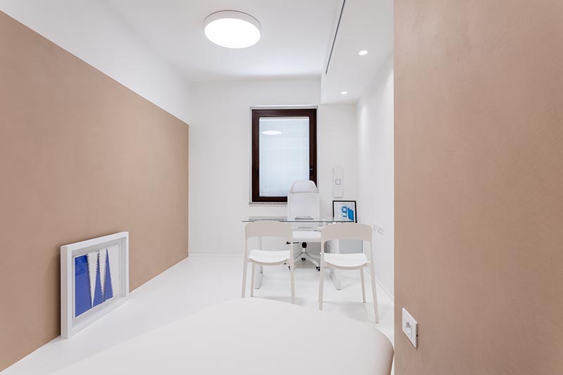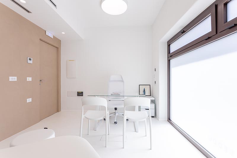 Il progetto ha riguardato la conversione di un locale commerciale in studio medico generico, attraverso una ristrutturazione globale degli spazi che unisce rigore tecnico e attenzione al comfort.